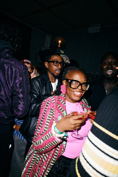 Jeremiah Asiamah, James Corbin and guest at BFC x OUTLANDER LFW SS26 Closing Party. Photograph by Sofi Adams, BFC