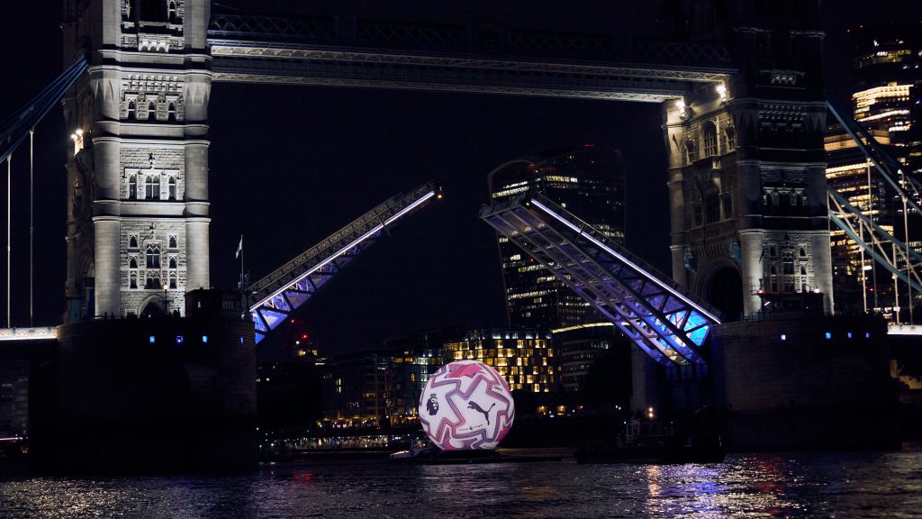 They may have seen the PUMA match ball on the pitch as PUMA is the official match ball provider, but were they aware that the first goal of the season was by Aston Villa and England forward Morgan Rogers, kicking a giant 10.5 metre illuminated PUMA match ball through iconic Tower Bridge in London on 12th August 2025? Onlookers watched in awe.